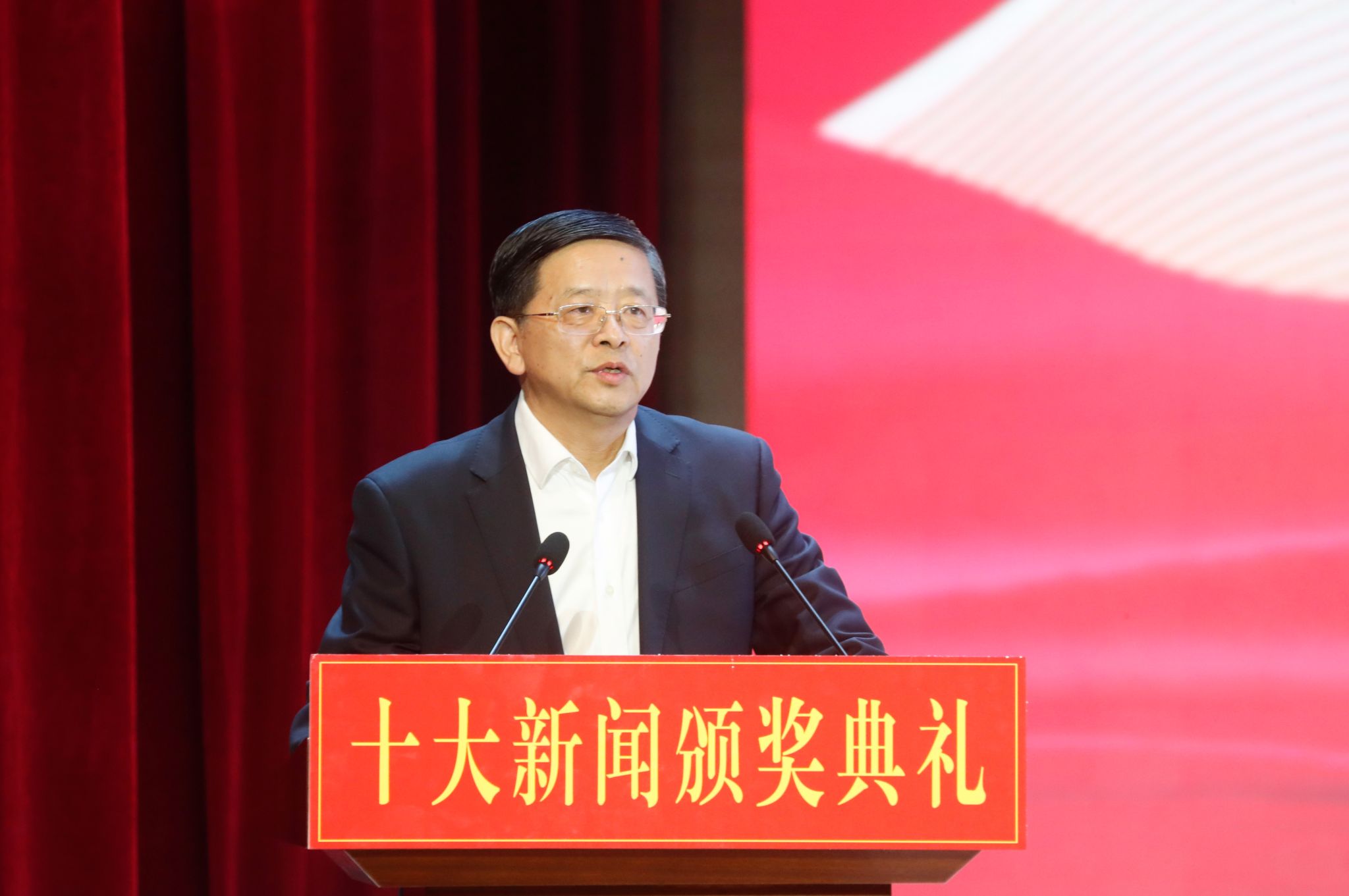 最后,党委书记郭长义讲话。他指出,十大新闻颁奖典礼是学校着力打造的褒扬先进、凝心筑梦的重要平台,创办以来持续发挥着强信心、暖人心、筑同心的重要作用。他历数过去五年登台受奖的先进集体和先进个人,感谢他们为学校建设发展作出的贡献,并向学校所有披荆斩棘的开拓者、执着前行的奋进者以及众多未能登台的默默无闻的奉献者致以诚挚的谢意!郭长义谈到,近年来,学校党政同心擘画、师生员工接续奋斗,学校各项事业蓬勃发展、核心指标接连突破,学校已经由求增量,全面提升各项工作,实现快速发展阶段进入求质量,打造核心竞争指标,致力高质量发展阶段。他就全校师生坚定必胜信心、保持旺盛斗志,在2024年打赢打好全面振兴新突破三年行动攻坚之年攻坚之战,把握好建设发展重大机遇推动学校办学层次实现跃升提出三点期望:一是乘势而上,再立新功,全面总结、有效借鉴过去一年经验成果,激发抓发展、谋突破的干劲,推动学校各项工作取得全新成效;二是无惧失败,追求卓越,同优者“对标”,与强者“比拼”,在比学赶超、争先进位中为学校集聚发展优势、赢得发展主动。三是敢闯敢试,勇为人先,以“不破楼兰终不还”的锐气,下非常之功求突破、用非常之策谋发展,以更多拓荒性工作、创造性落实为学校发展打开局面。郭长义最后为全校师生员工送上新春祝福,祝愿大家2024年龙马精神书写出彩人生,龙腾虎跃助力学校前行!